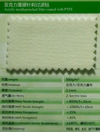 Acrylic felt ,has excellent acid resistance,alkali resistance and hydrolysis resistance.Recommended maximum continuous working temperature is 125℃,and maximum surge temperature is 150℃。It can be widely used in complexly chemical working conditions,of dust treatmengts and recycling.